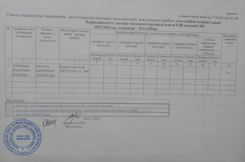 - Заява педагога про проходження позачергової атестації (на ім’я керівника закладу).
